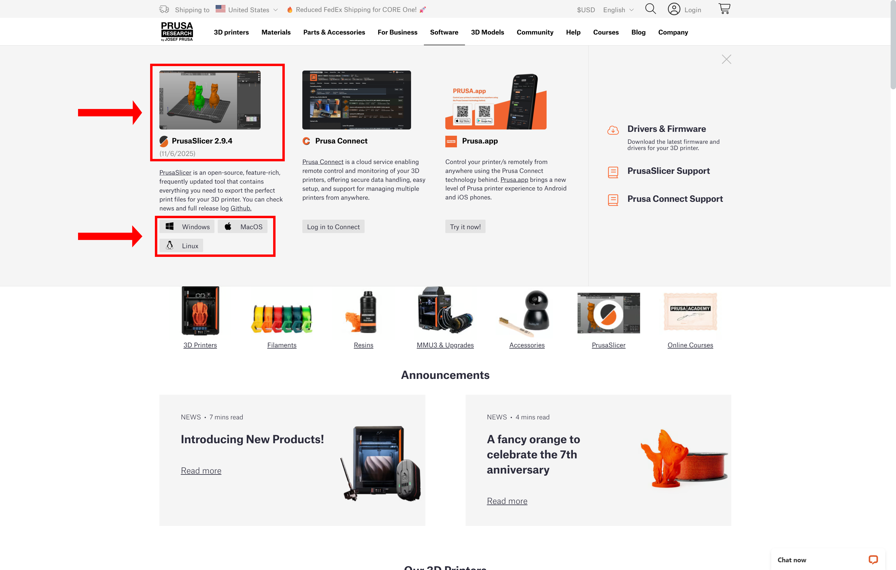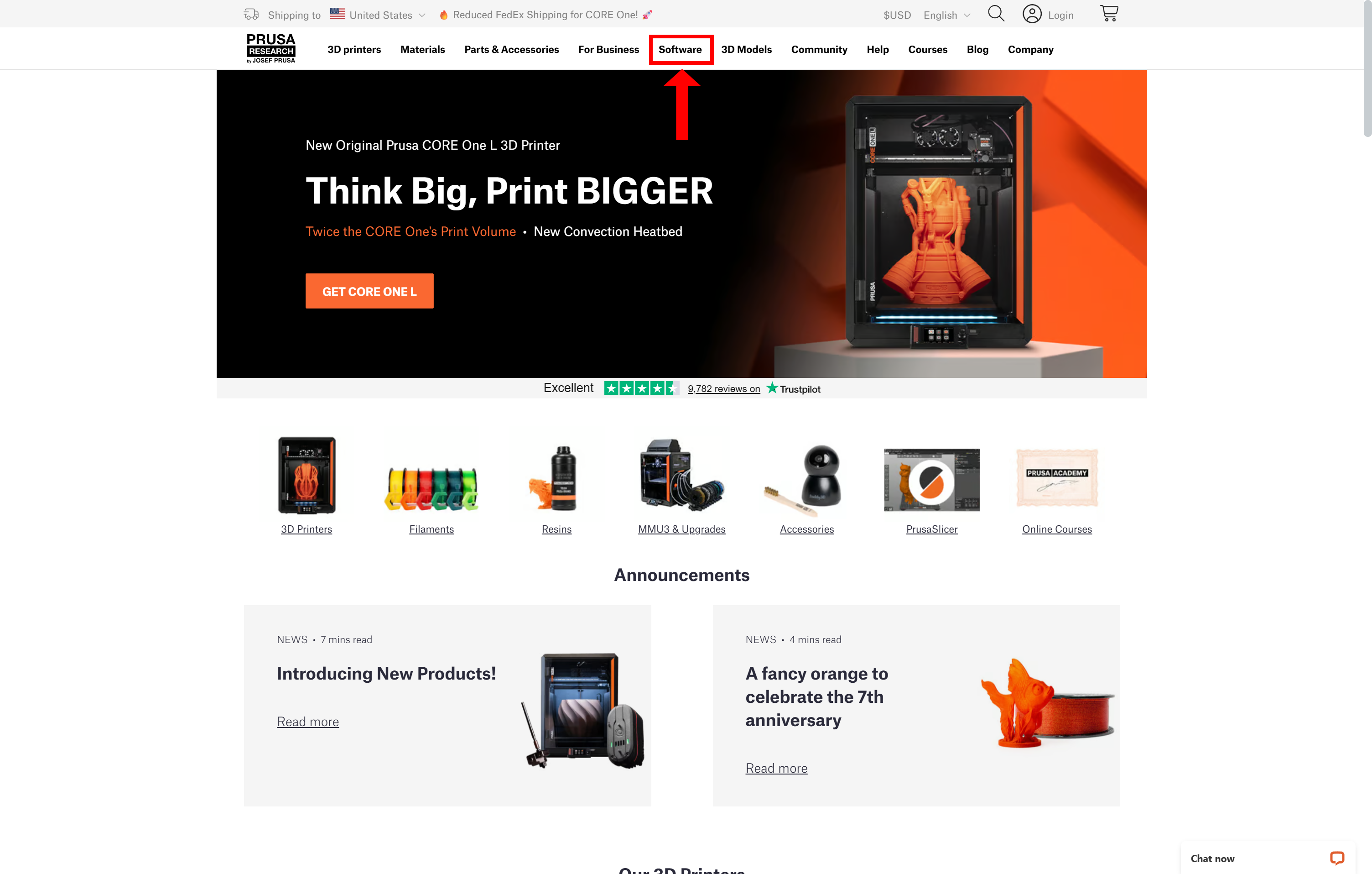Go to the main Prusa website (opens in new tab) and click the Software dropdown menu