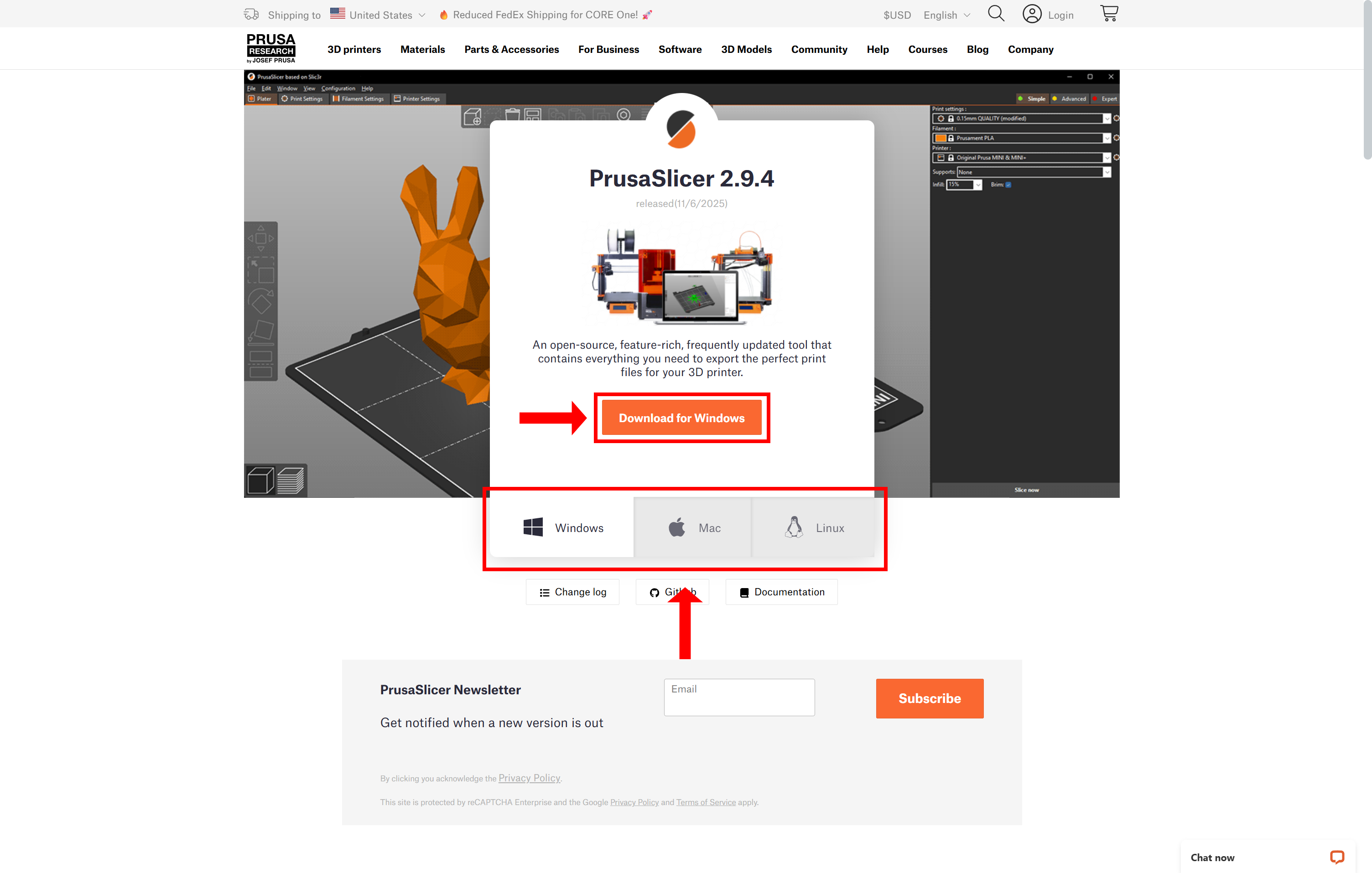 You can either click the PrusaSlicer 2.9.4 (or whatever is the latest version), and it will take you to the download page