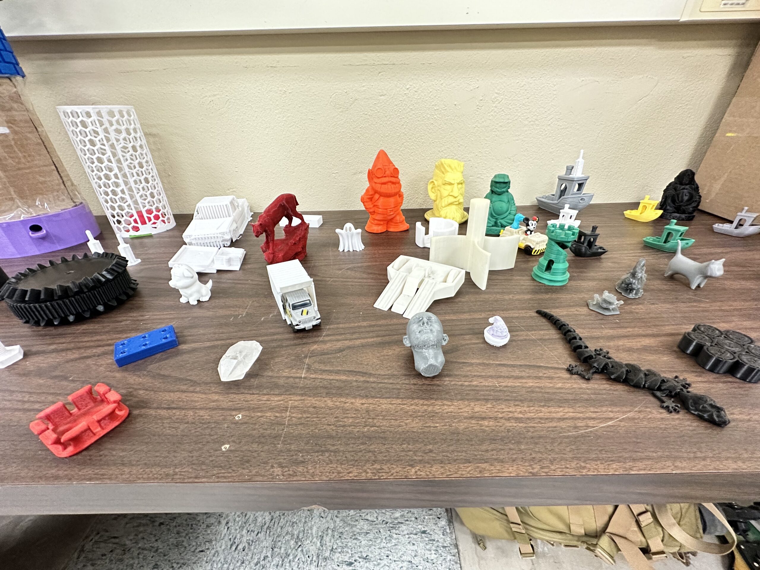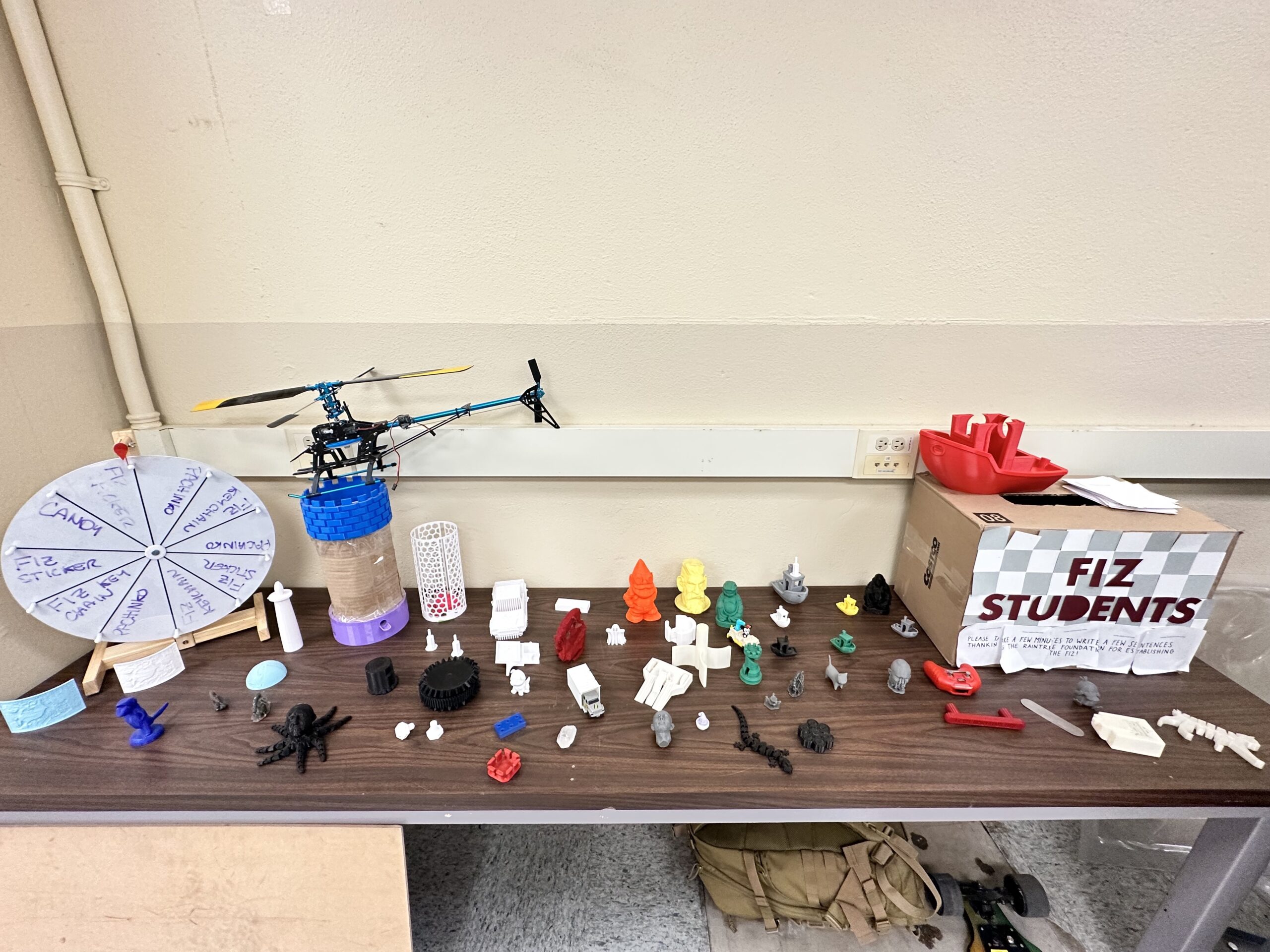 These are personal projects made by our FIZ employees (past and present) as well as students who have kindly donated their projects to the FIZ to be showcased. We have projects showcased throughout the semester from 3D/Resin Prints to CNC Milled Samples to molds to friendly competition operable projects.